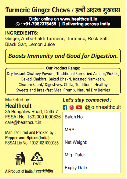 INGREDIENTS: Ginger, Amba-Haldi Turmeric, Turmeric, Rock Salt. Black salt, lemon juice